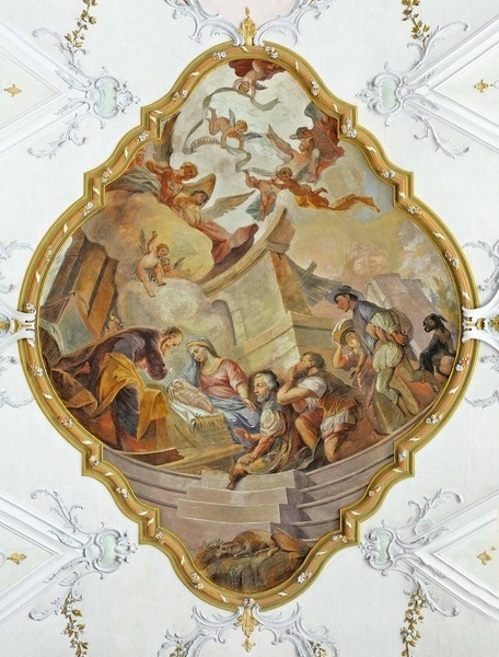 Untrennbares Element und Grundlage des Raumkunstwerks der Barockzeit waren die Stuckaturen. Zusammen mit den zarten Pastellfärbungen und den Goldauflagen betonen sie die Raumstrukturen, bilden Profilrahmen um Decken- und Wandgemälde und verbinden die gesamte Ausstattung zu einer Einheit. Die ausführenden Stuckmeister waren beide aus der berühmten Wessobrunner Künstlerschule hervorgegangenen.